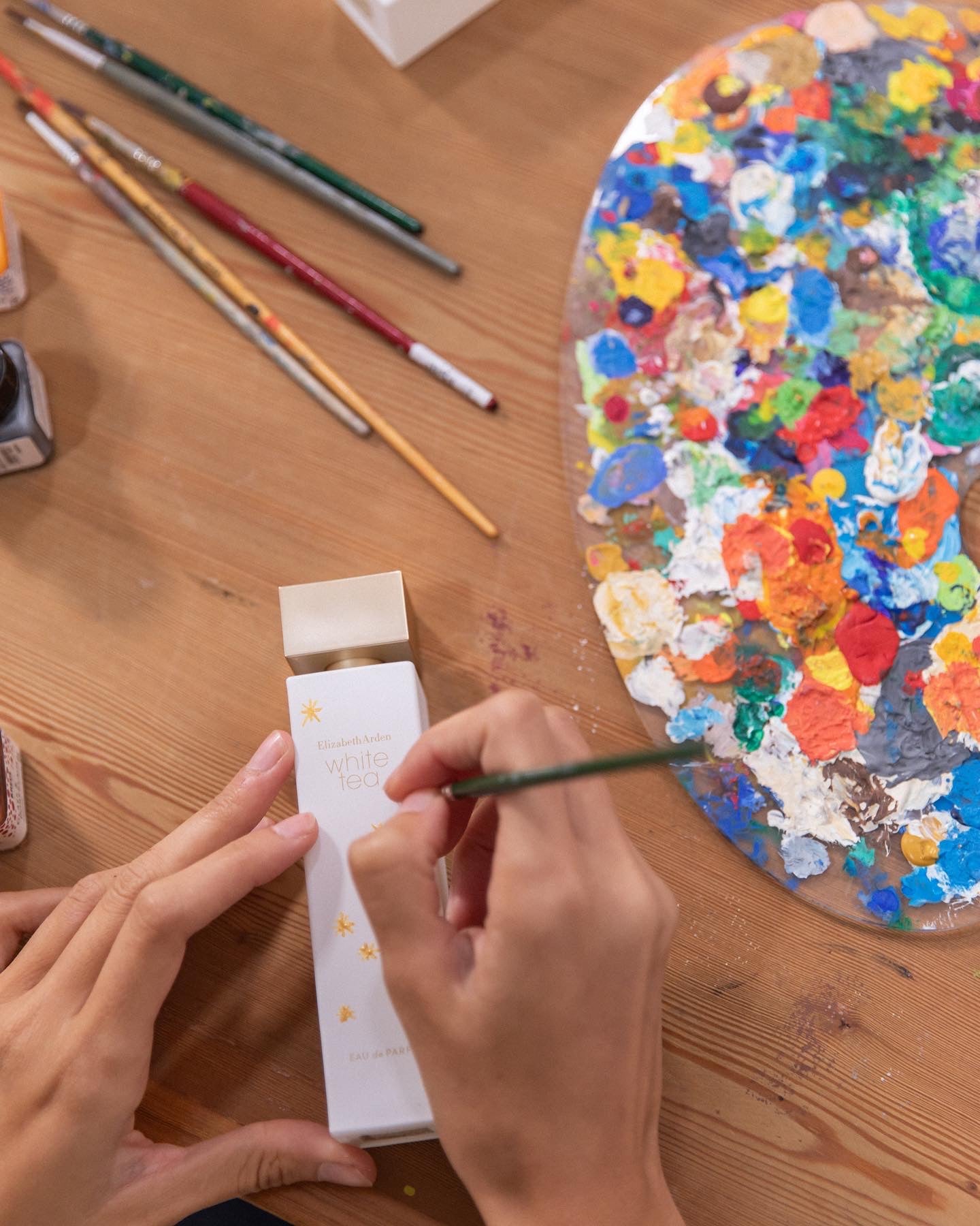 Hand-painted perfume bottles in collaboration with Elizabeth Arden.